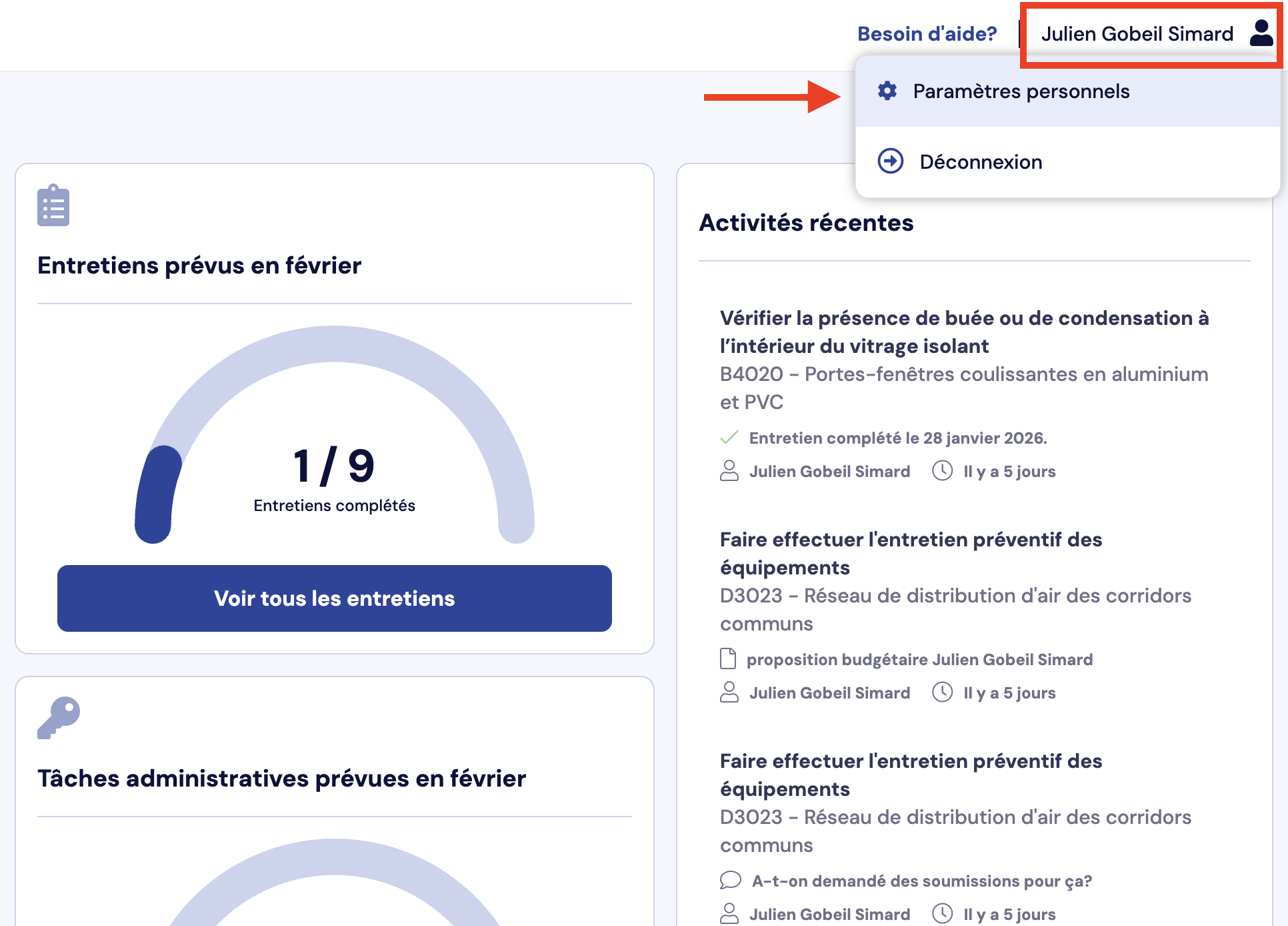 Dans le coin en haut à droite, accédez à vos Paramètres personnels.