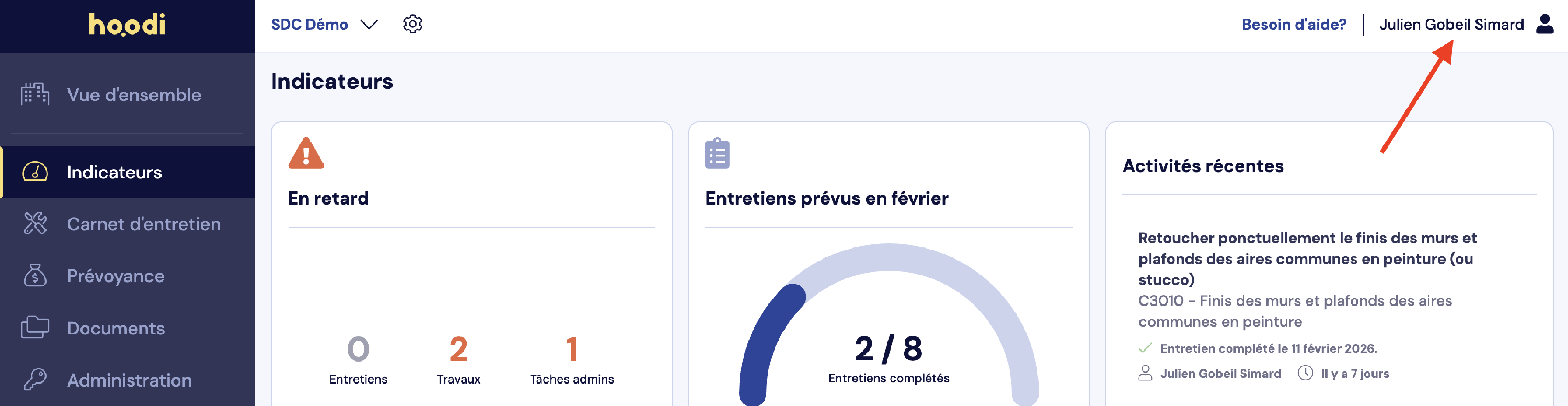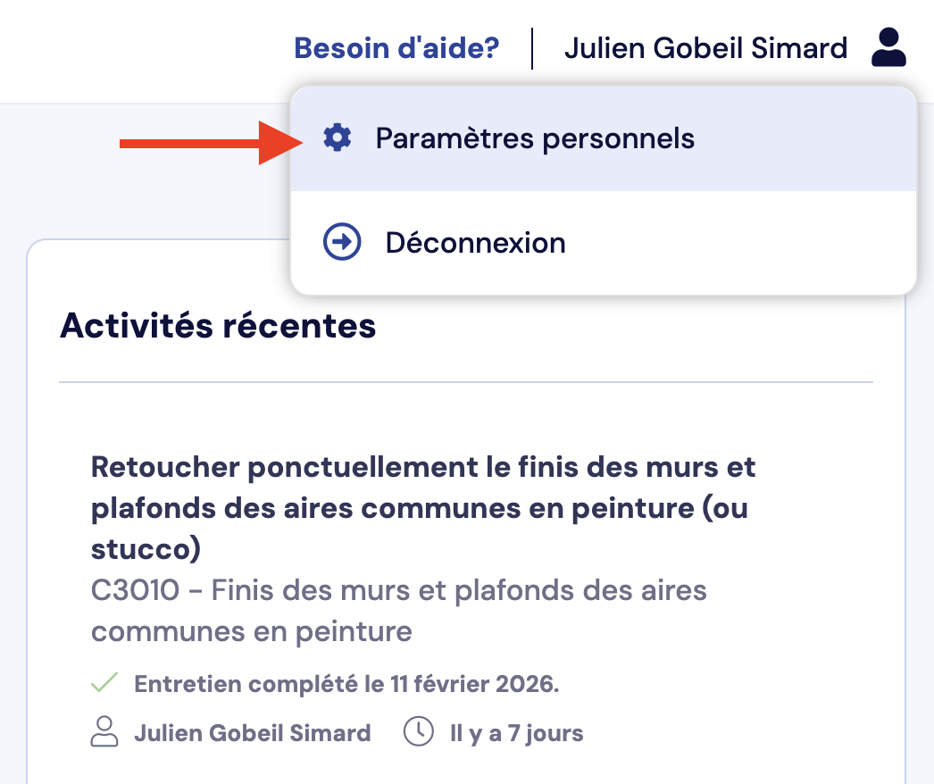 Cliquez sur votre nom d'utilisateur en haut à droite dans l'application.