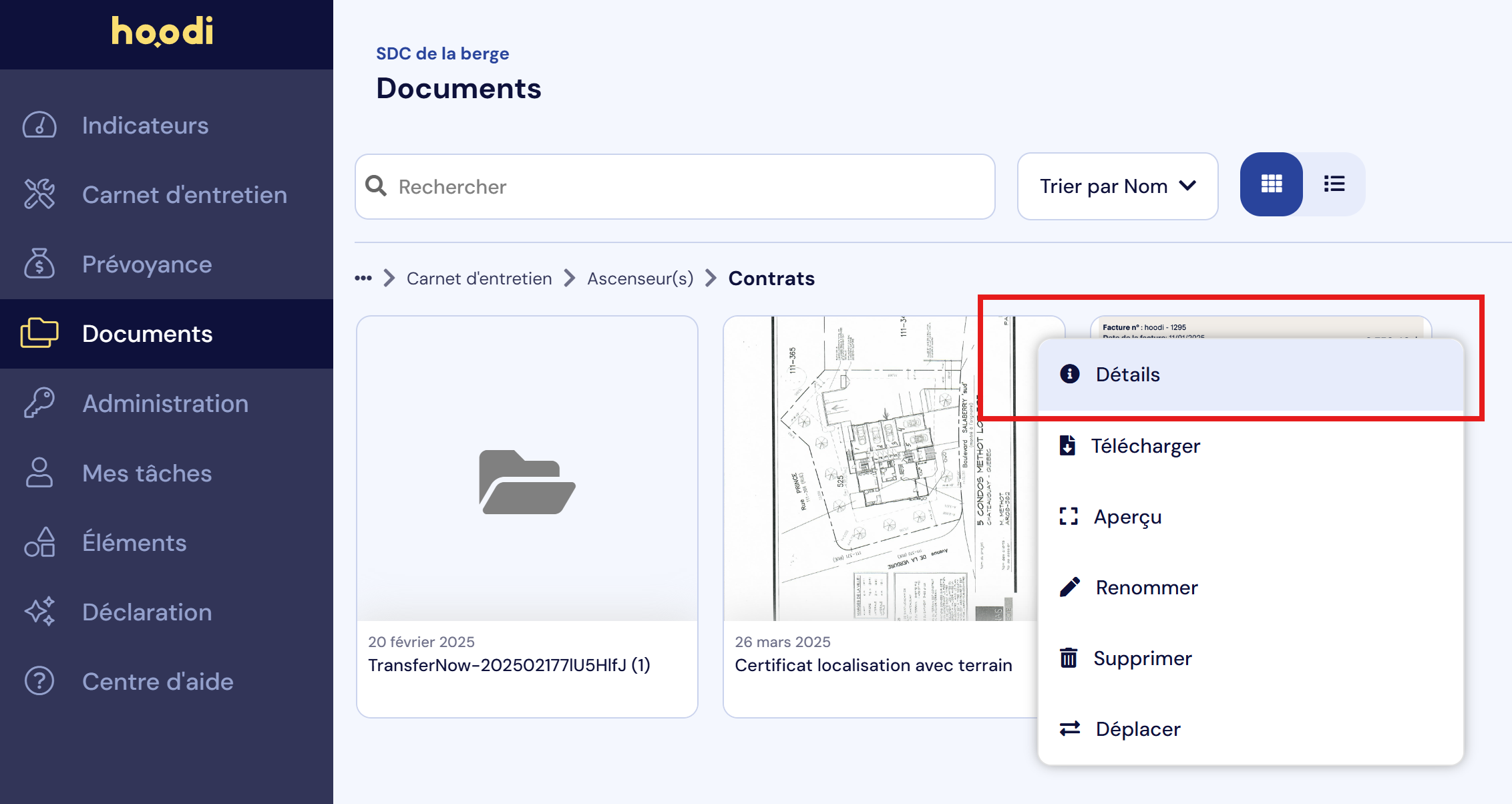 Repérer le document auquel vous souhaitez ajouter un ou plusieurs mots-clés, puis cliquez sur les trois petits points noir en haut à droite et ensuite sur Détails.
