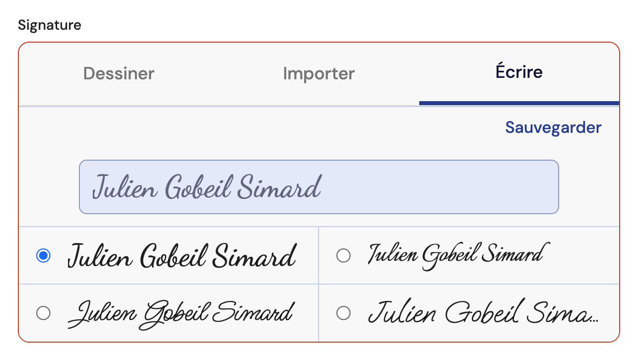 - Générer une signature à partir de votre nom en utilisant l'un des styles proposés.