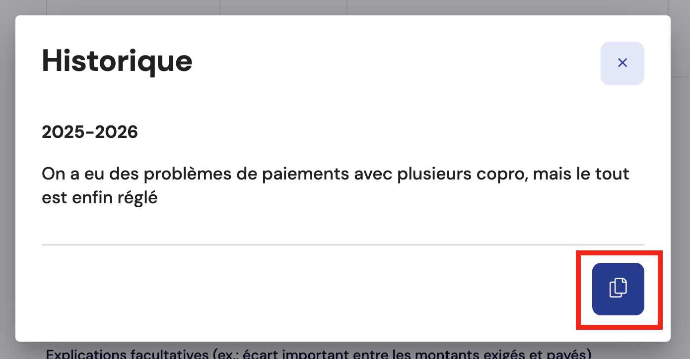 Il est maintenant possible de visualiser et copier les explications facultatives d'une année financière précédente.